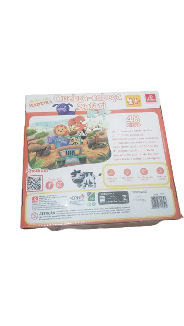 Os animais do safári estão sempre em busca de aventuras, com essa turminha a diversão não tem fim. Com esse lindo quebra-cabeça de 48 peças, você encaixa as peças uma a uma até formar uma linda e colorida imagem.